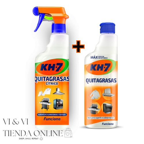 Cuando la grasa se resiste, solo hay un producto que responde al instante: KH 7 Quitagrasas Cítrico, ahora en pack ahorro de 2 x 715ml con vaporizador + recambio. Este formato práctico y económico está pensado para quienes no quieren renunciar a la limpieza profunda ni al frescor de un buen aroma en la cocina y otras zonas difíciles.