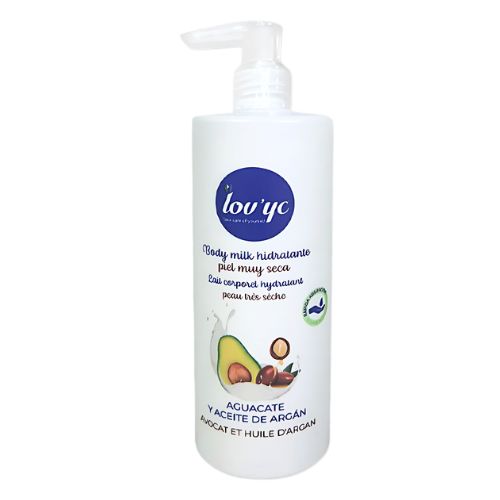 Lov’yc Leche Hidratante para piel muy seca 400 ml con Aceite de Argán y Aguacate está diseñada para nutrir en profundidad y devolver elasticidad a las pieles muy secas. Su fórmula líquida de rápida absorción facilita una aplicación uniforme, dejando la piel suave, hidratada y con una sensación de confort inmediato. Esta leche corporal ha sido creada para personas que buscan una hidratación intensa sin sensación grasa, gracias a una combinación de ingredientes naturales reconocidos por sus beneficios.