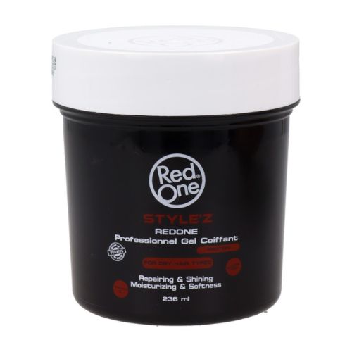 El Gel RedOne con Proteina Style’z Professional 236 ml es un gel capilar diseñado para proporcionar fijación media a fuerte con una textura ligera y fácil de aplicar. Este producto soluble en agua ofrece control y definición sin dejar residuos, ideal para quienes buscan un acabado natural con brillo saludable y sin descamación.